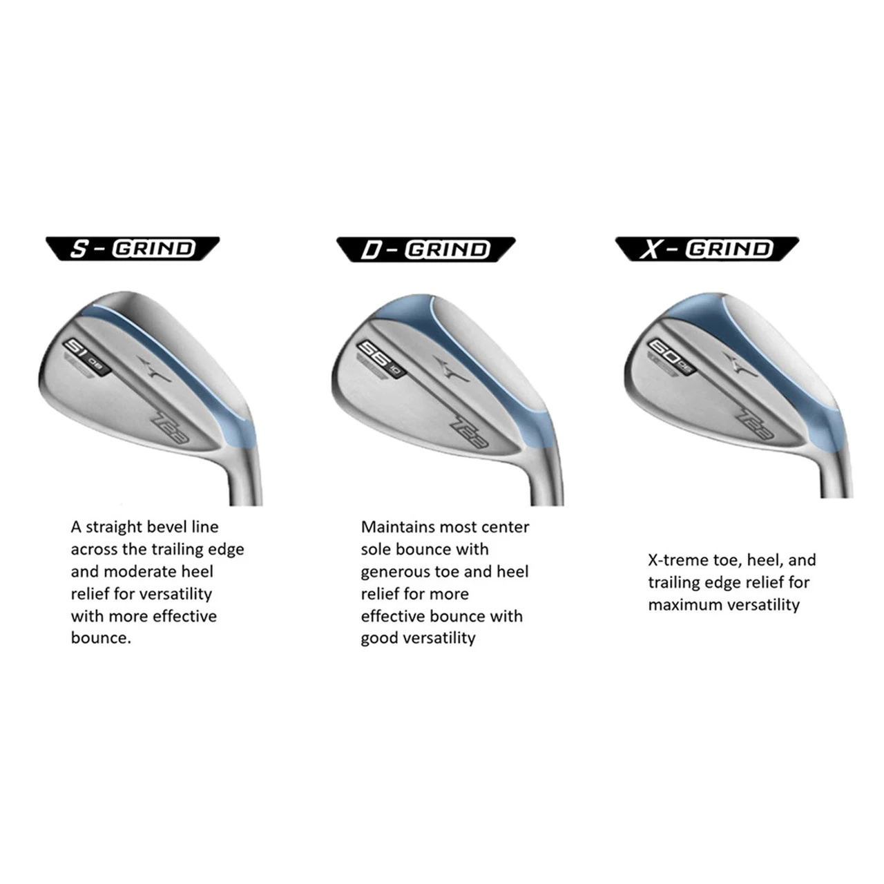 The Mizuno T22 Satin Chrome Wedges. More than fifty years of refining our Grain Flow Forging process in Hiroshima, Japan – ensure that Mizuno wedges are unrivalled for touch and feel around the green. Played by one of the greatest short-game players of any generation – Luke Donald. Now with an additional soft feel copper underlay and the option of 4 levels of sole grind..