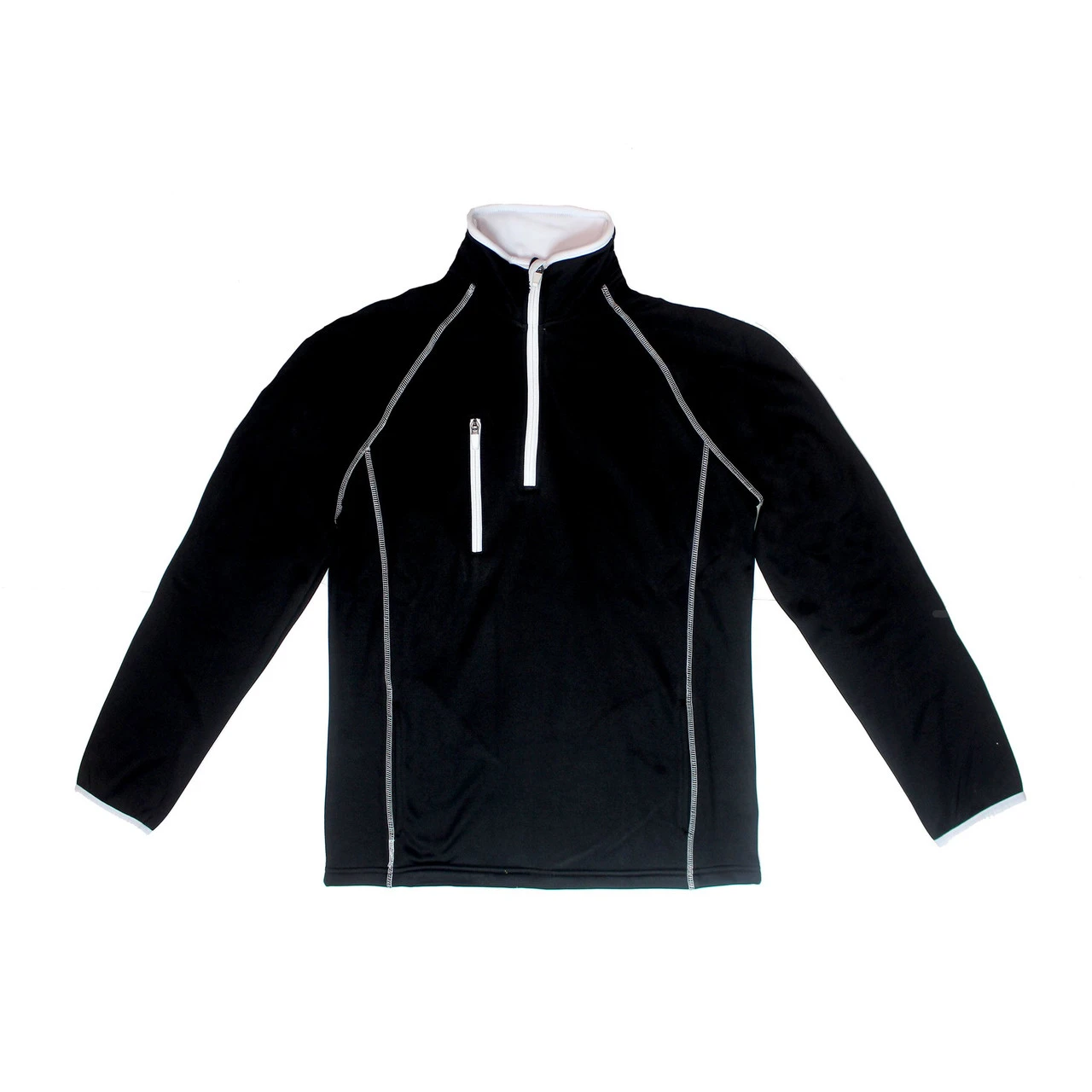 - Stand up zip-through collar. – Quarter length zipper closure. – Raglan sleeves for freedom of movement.
